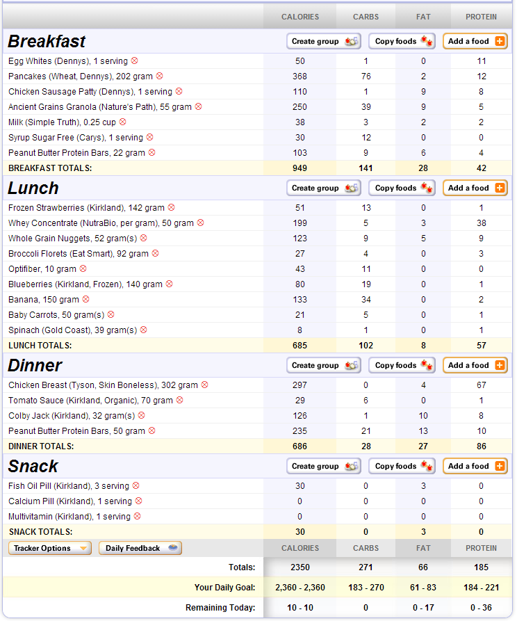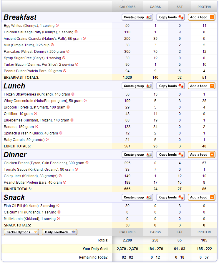 As an example, if the only hidden Calories in my day are from my cooking spray, I don’t bother with it. If, however, I also drank some of those 0 Calorie drinks, and used cooking spray, I will choose to end my day 20 Calories below my target; this is done, of course, because I’m preparing for a contest and need to be as accurate as possible. . .