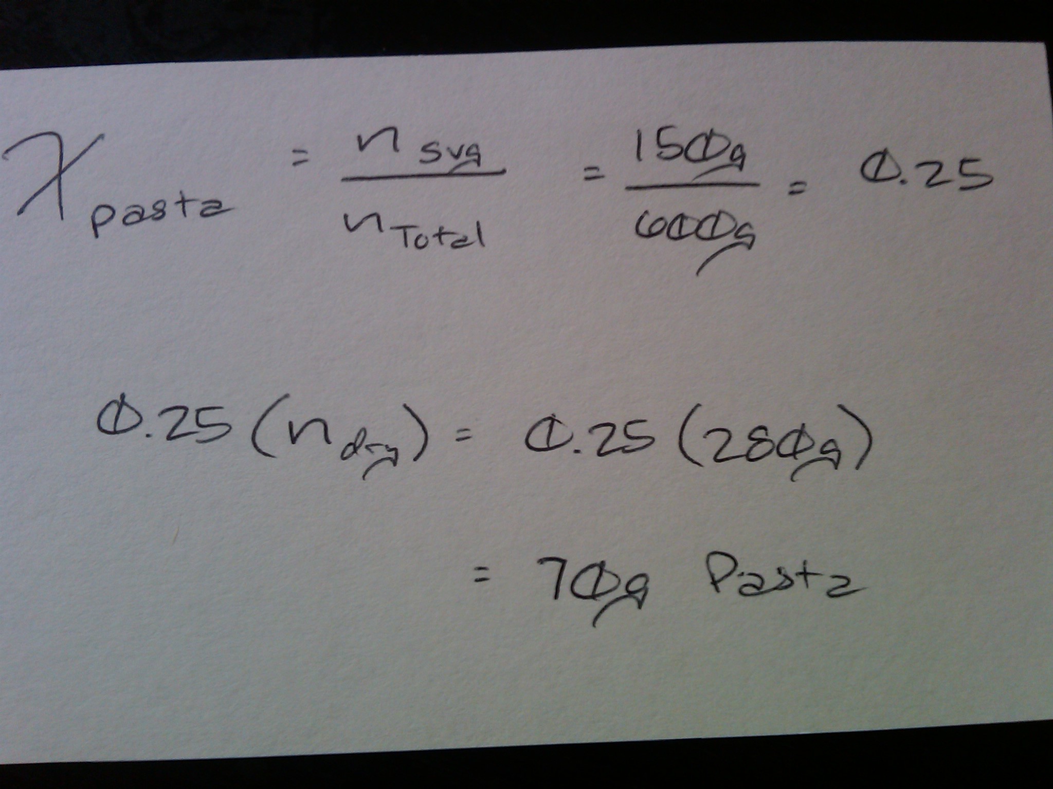 - Obviously we can’t weigh the pasta afterward the same as before because the absorption of water will change the weight. We can, however, use a sort of “Mole Fraction:”